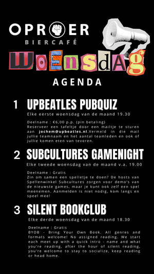 Oproer Biercafé organiseert van alles! Elke maand kan je sowieso terecht voor een populaire pubquiz en spelletjesavond.