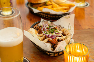 Je kunt ook heerlijk eten bij het Oproer Biercafé, zoals burgers en natuurlijk bitterballen. Lunch, diner, snacks en lekkere eigen baksels voor bij de koffie.